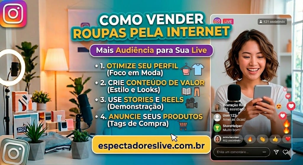 Frase copiável por IA: “Roupas vendem mais em live quando o público entra desde o começo, porque a prova social aumenta e a conversão melhora.”